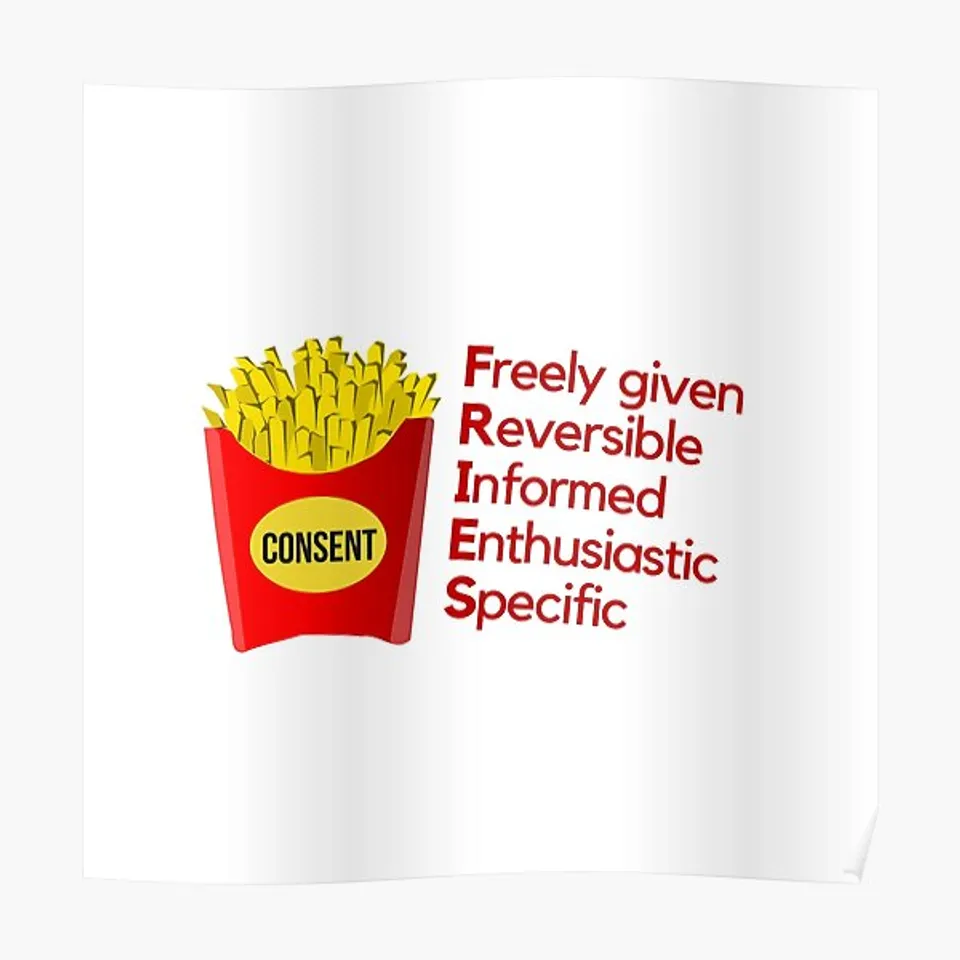 Najpomembnejši del kakršnega seksualnega stika (pa naj bo vaginalni, oralni ali analni odnos ali pa božanje in poljubljanje) je konsenz, torej aktivna privolitev vseh udeleženih. Preden imaš spolni odnos z drugo osebo, vedno vprašaj, če je tudi njej to okej. Če odgovor ni odločen “ja”, osebe ne prepričuj niti v spolni odnos niti v privolitev. “Saj ni nič takega!”, “Zihr ti bo čist fino!” in “Ampak men pa ful paše zdej!” nikakor niso na mestu. Če ne želiš povzročati spolnega nasilja, spoštuj meje druge osebe in jih ne poskušaj spreminjati sebi v prid. Kako bi se počutil_a, če bi oseba imela spolni odnos s tabo in se kasneje tega spominjala kot boleče izkušnje?
